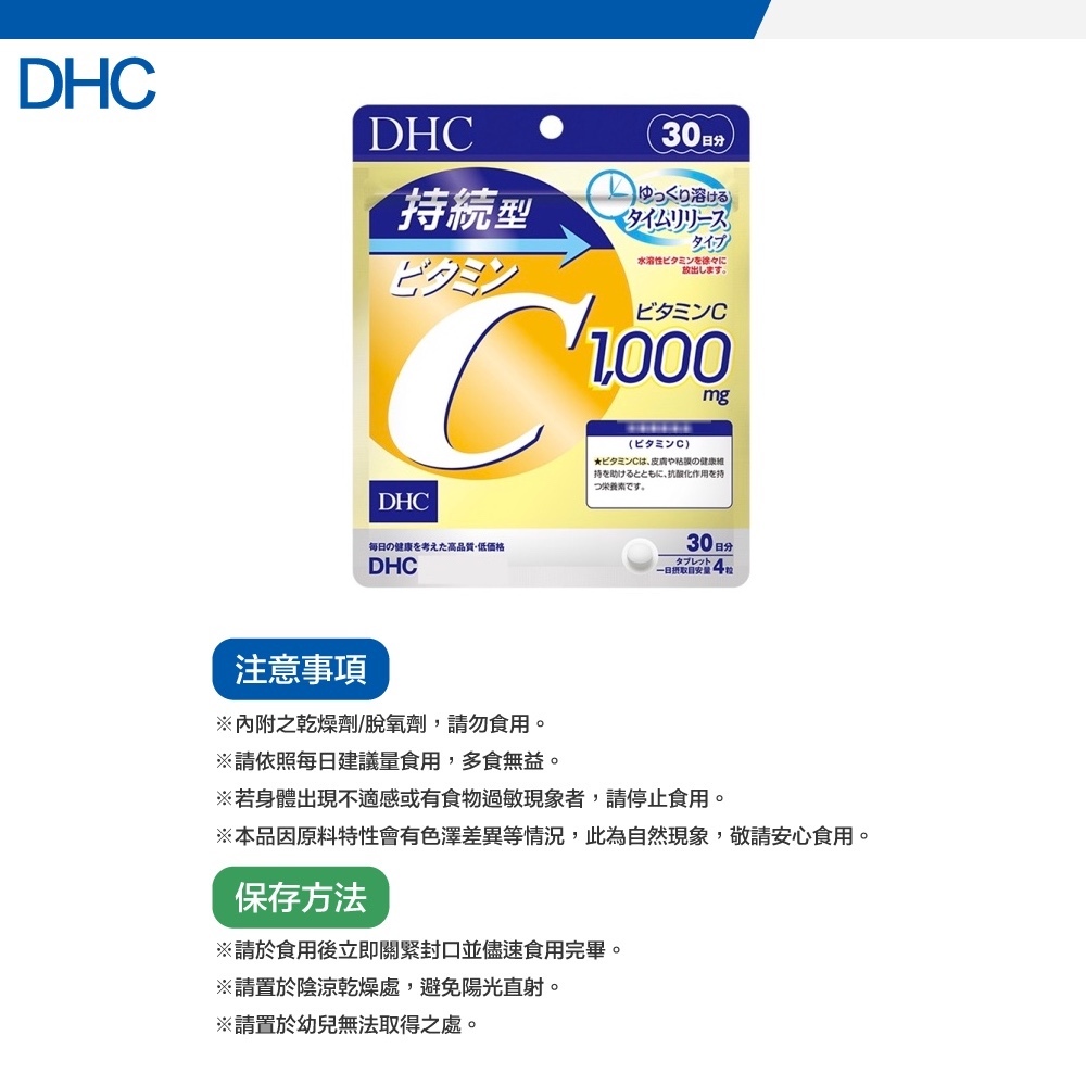 🔸持續型維他命C:每日4粒,食用時間依個人習慣即可